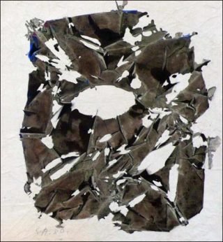 Dans son ouvrage intitulé L’étoilement, Georges Didi-Huberman, un compagnon de route et de pensée de Simon Hantaï, aborde la question de l’espace pictural créé par le nœud et son dépli: «Un nœud, dit Simon Hantaï, est d’abord “à la rencontre d’une verticale et d’une horizontale”. Telles seraient les coordonnées élémentaires. Mais le nœud, d’emblée, fait bien plus qu’assurer un simple croisement. Dans un sens, il invagine l’espace, créant poches et dedans repliés, tactiles; dans un autre sens, il ouvre l’espace à l’étoilement, ce que Simon Hantaï nomme un “éclatement spatialisant” et optique.» (Georges Didi-Huberman, L’étoilement, Les éditions de Minuit, 1988, page 90.)