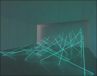 — François Morellet, L’Avalanche, 1996. 36 tubes de néon bleus, fils haute tension blancs. 400 x 400 cm