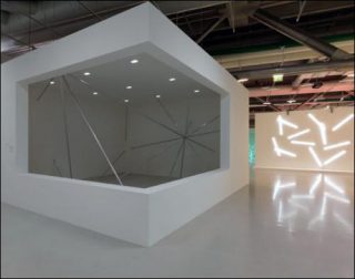 — François Morellet, π Weeping Neonly no 3, 2003. 24 tubes de néon blancs, fils haute tension blancs. Dimensions variables