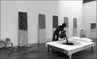 La part performative, souvent filmée, est importante dans son œuvre et participe activement à poser ses réflexions, selon sa devise «je me performe donc je deviens ce que je performe». Depuis l’exposition «Ceci est ma maison/This is my place» au Magasin à Grenoble en 2012, l’artiste a créé et développé un dispositif d’éléments évolutifs avec des «lits fontaines», des lits au sein desquels ont été placés une fontaine d’encre noire, ainsi que des papiers peints ou des panneaux recouverts de tissus à fleurs et fruits colorés symbolisant des espaces intimes et composant ainsi des «chambres dans un espace public».