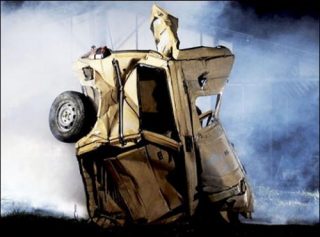 Tôles, toiles et carrosseries résistent ou cèdent aux accidents volontaires et embûches préméditées qui jalonnent leur parcours. Maculées, froissées, compressées, explosées, leurs surfaces sont recouvertes de traces, d’impacts, nés de frottements ou des tensions supportés.
