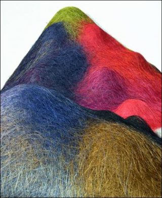Julie Legrand joue des formes avec une grande liberté. Elle explore la texture du fil, ose le mariage atypique du verre et de l’éponge, confronte des énergies différentes. Ses alliances de matériaux fragiles et bruts nous plongent dans un art partagé entre délicatesse et puissance.
