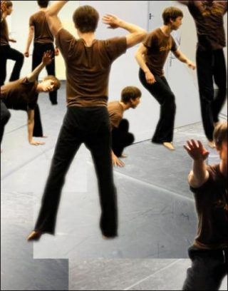 Ces inconsistances et ces absurdités sont relayées à un autre niveau, qui concerne cette fois la notion-même d’individu. En effet, une fois la partition établie, Daniel Linehan double le karaoke: deux interprètes, côte à côte, exécutent le même rôle, récitant leur texte et dansant soit à l’unisson, soit en écho ou en double silencieux. Ce n’est pas un mais deux Platon, Eschyle, etc. que l’on a sous les yeux. La figure du grand auteur, avec sa singularité et son génie, est ainsi clonée, transformée en figure imitable et malléable. La tragédie vire à la comédie et Daniel Linehan interroge ainsi la conception valorisant l’individu extraordinaire, à la subjectivité unique, dans une société où il est pourtant visible que l’addition des intérêts personnels peut mener à la catastrophe. Le chorégraphe poursuit ainsi son travail sur la question de l’écart, en quête de conjonctions nouvelles et The Karaoke Dialogues invite à une réflexion sur ce que l’on gagne et ce que l’on perd quand on participe à une action commune avec d’autres.