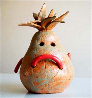 — Base on a true story, 2008. Céramique émaillée. 18 x 18 x 26 cm.