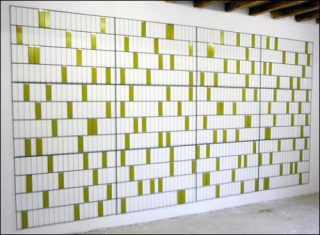 Dans les Elevages, comme dans Airlines et Lames, la variété des couleurs est fixée par le nombre limité d’adhésifs monochromes disponibles sur le marché (une douzaine). Dans ce jeu de la contrainte, avec le principe de l’échantillon qui leur donne forme, les Elevages rappellent une expérience très courante dans le commerce des matériaux où le choix suppose cette opération très particulière qui consiste à projeter mentalement la facture et la couleur d’un échantillon dans un site: le support, la surface et le contexte où le client — puisque commerce il y a — souhaite appliquer un matériau — pur travail d’abstraction s’il en est.