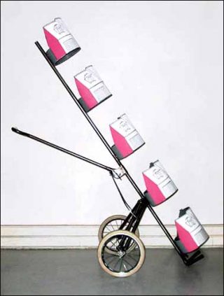 — Une tranche de bonheur, 2003. Acrylique sur toile marouflée sur PVC, métal nickelé et roues. 157 x 68 x 135 cm.