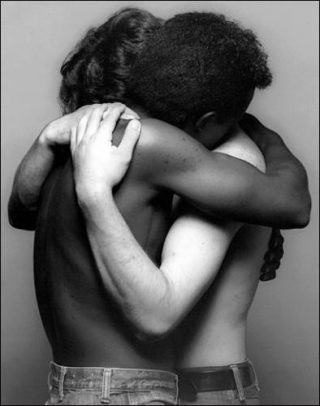 Surtout, Robert Mapplethorpe apparaît comme un fervent admirateur des corps noirs, de leur vigueur, de leur musculature et de leur souplesse, dans une société américaine encore en proie au séparatisme et au racisme. Avec Ken Moody et Robert Shaman, il crée par exemple une esthétique «black and white» où les corps de ses deux modèles se répondent, s’imitent, s’imbriquent, se confondent. Ajitto pose recroquevillé sur un tabouret, le visage plongé dans ses genoux. Robert Mapplethorpe le photographie sous toutes les coutures: de face, de dos et de profil. On perçoit les pigments de sa peau quasi imberbe, ou bien la chair craquelée du fessier et des formidables cuisseaux de Derrick Cross, le crâne parfaitement lisse de Ken Moody, yeux clos, que Robert Mappelthorpe photographie en plongée.