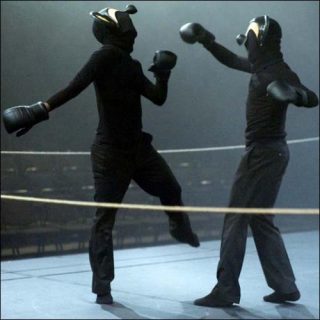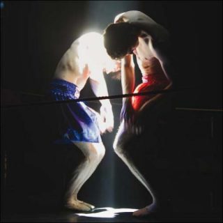 Un boxeur est toujours en mouvement. Il s’oppose trois fois trois minutes à son adversaire avec lequel il essaie de maintenir une distance d’une longueur de bras. Ainsi, pendant tout le match il occupe à la fois son propre espace et celui de l’autre. Dans la danse également, la distance entre les corps joue un rôle important. Les danseurs sont entraînés à partager l’espace et l’énergie tout en restant conscients de la position et des mouvements précis de chacun. Exactement comme des boxeurs sur un ring. Sur scène, l’espace entre deux corps est toujours chargé de sens, comme une métaphore du rapport à l’autre.