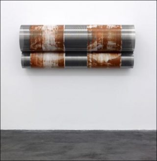 Avec les Rolls, série d’Å“uvres engagées tout récemment pour son exposition au Crac de Sète, elle affirme elle-même chercher à «mettre la peinture en danger» en se frottant à l’hérésie, au mélange de la peinture à l’huile avec la peinture à l’eau. Défiant les lois de la physique, les deux matières non-miscibles se rencontrent à la surface de deux rouleaux d’inox tramé compressés l’un contre l’autre pour forcer le mélange qui, pourtant, résiste.