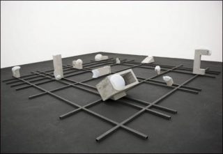 De cette violence faite à la peinture par le frottement, l’écrasement mécanique, résultent comme des traces de lutte, les séquelles d’un dialogue de corps antagonistes à la communion impossible d’où seule la couleur sort vainqueur. Face à ces rotatives absurdes qui ne produisent rien d’autre que la mémoire de leur contact, des protubérances semblent éclore de socles laqués blancs à moins que, comprimées entre leurs parois, elles ne cherchent à s’en échapper.