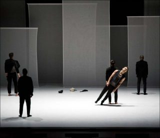 Dans le premier tableau, les danseurs qui tournent le dos au public dessinent des trajectoires réglées et rapides exprimant le tourbillon des passions, « la fulgurance, le côté brut, la vraie force du rouge. »