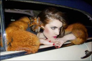 Dans la dernière salle, Miss Marion investit l’ensemble des murs avec cet immense poster mis aux carreaux et ses cadres qui courent le long de la cimaise. Sanctuaire des vestiges des années 50 et échantillonnage de la panoplie glamour. Téléphone en bakélite, sein blanc et rouge à lèvres, tout y est.