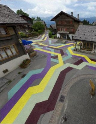 L/B opère par recouvrement de l’existant (murs, routes, terrains de sports), agit depuis la surface. La pratique du all over permet de déborder de la surface du mur cimaise comme espace d’exposition, afin d’exploiter librement les sols, plafonds et éléments de mobilier pour la conception d’environnements. Les Beautifull walls réalisent le passage de la surface au volume, de la deux dimensions à l’espace tridimensionnel.