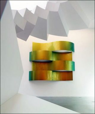 Lorsque l’on passe devant les Waves du duo d’artistes suisses Lang et Baumann, ces plaques d’aluminium laqué n’ont de cesse de nous entretenir sur la magie de la couleur. Par quel miracle?