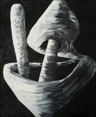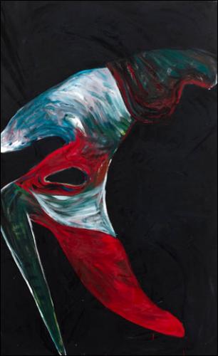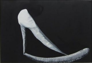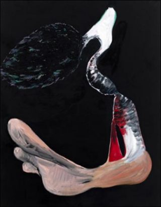 Il ne faut donc pas craindre de voir ce qu’on n’ose parfois que deviner. Dans plusieurs toiles, les formes organiques semblent se terminer en l’objet fétichiste par excellence: l’escarpin féminin. Les deux principes, féminin et masculin, s’entremêlent totalement, ou s’opposent artificiellement, non sans humour, dans deux toiles intitulées respectivement Monsieur et Madame.