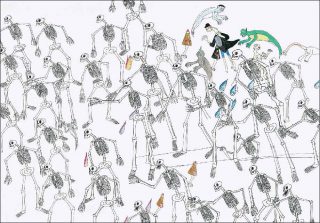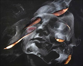 Pour Ingrid Maillard ou Cornélia Eichhorn, par exemple, la mort est un déchirement intérieur, une rupture biologique, dramatisée par les forts contrastes du graphite sur papier. Dans la même veine, Maike Freess dessine, dans un délicat entrelacs de papiers découpés et de cuivre, le feu qui couve sous la cendre d’un visage. Pour Émilie Chaix ou Yuichiro Ukaï, c’est au contraire un squelette richement orné et coloré, prêt pour la danse macabre, que Vincent Corpet imagine entre un squelette et un sympathique extraterrestre. Encore et toujours, la mort reste à la fois intérieure et extérieure, appel et pourrissement.