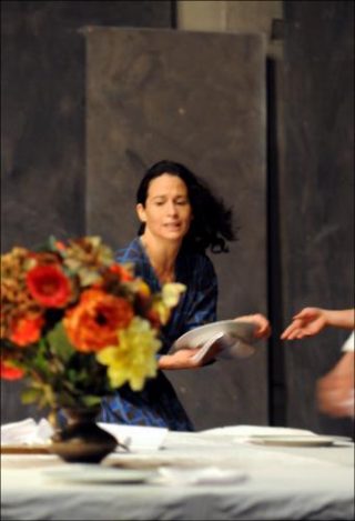 Lorsque les hommes parviennent à associer toutes les tables, à dresser un festin, la scène dégénère en une bagarre qui laisse les interprètes souillés, sans dessus dessous, pareils au monde dont naissent les peurs. Salves, par ses actions en chaînes, inlassablement redites, rêves répétitifs amputés de leurs fins, rappelle qu’il est nécessaire de retenir ce qui ne cesse de se défaire: la liberté et la communauté humaine.