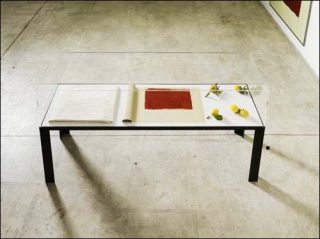 Même jeu trouble avec ses tableaux. Le présent est à la surface, là où le visible s’épuise dans les multiples apparitions de la peinture. Apparitions ou disparitions: appliquée sur du papier miel, du parchemin, sur ou sous du plexiglas, la peinture ne couvre jamais la totalité des surfaces mais son absence suggère la mise en scène du vide ou l’apparition d’une couleur fantôme. La couleur rouge quand elle y est; la transparence (pour le plexiglas) ou la couleur chair (pour les papiers) quand elle n’y est pas: là aussi, nous ne sommes pas très loin du sacré. Nous nous en rapprochons véritablement avec It Contains, cette vitrine agrémentée de citrons, de papiers de sel et de miel, qui suggère la présence d’un corps couché.
