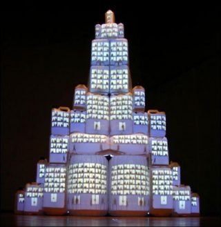 Samuel Rousseau. Il n’y a aucun trucage. J’ai choisi le système de la rétroprojection pour limiter au maximum la visibilité du matériel. Je voulais éviter que la pièce ne se transforme en une espèce de déballage et de démonstration technologique. Le principe est simple: je fabrique une maquette du bâtiment à échelle humaine, je place un acteur derrière — ce n’est pas moi qui joue — et je le dirige. Je réalise plusieurs films indépendants, en faisant des zooms sur chaque ouverture de fenêtre et, enfin, je redistribue en synchronisation chaque film sur la façade. Alors que le cerveau du spectateur ne voit qu’un quart de l’image, il réinvente les parties manquantes et reconstitue mentalement le corps dans sa totalité.