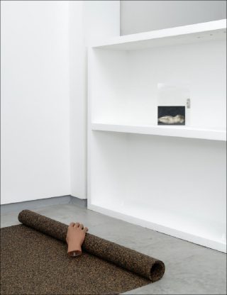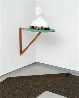 Guillaume Constantin procède à une forme de recyclage, tant des matériaux que des objets. Il opère notamment des déplacements complets de leur utilité ou de leur contexte habituel. Le liège, qu’il utilise souvent, est détourné de sa fonction d’isolant phonique et de sa position ordinaire sous les parquets: il est déployé ici sur le sol, comme un tapis.