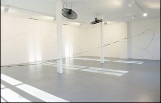 — Zilvinas Kempinas, Airborne, 2008. Bande magnétique, deux ventilateurs. Dimensions variables.