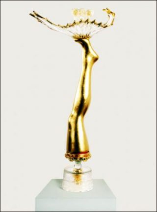 — Skall, Nuées et Merveilles, 2011. Verre, résine, porcelaine, bois, feuilles d’or 24 carats, terre d’Angkor. 120 x 56 x 20 cm
