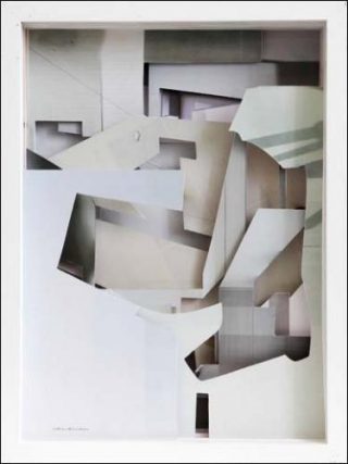 A travers «Scènes», Claudia Larcher utilise ainsi la surface de la galerie — dont la vitrine — tel un décor de théâtre. Le lieu d’exposition devient dès lors le cadre d’une scénographie, composée de fragments de bâtiments et de photographies d’architecture, qui apparaissent telles des couches successives que l’artiste emploie pour ce collage grandeur nature.