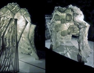 La sculpture de Tom Bénard fait également référence au «transhumanisme». Retournant leur proposition de modification de l’humain par la machine, c’est ici l’organique qui prend le dessus. Le bâtiment qu’il a conçu est comme une entité matricielle dans laquelle les humains joueraient le rôle d’organes. Il en a fait une maquette à l’aide d’une imprimante tridimensionnelle, elle-même sorte de «machine à répliquer» semblant issue de la science-fiction. En effet, le fantasme de la duplication par synthétisation est actuellement source de toutes les spéculations.
