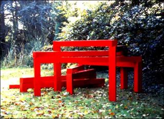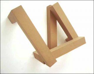 — Climbing Beam, 35°-70°-105°, 2002. Medium collé. 111 x 150 x 60 cm – 4 poutres 100 x 15 x 15 cm.
