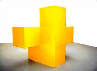 — Super positions n° 1, 2002. Alucobon jaune. 210 x 210 x 140 cm.