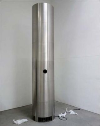 Cependant ici, rien de spectaculaire, bien au contraire. Ces mêmes éléments sont convoqués dans une très grande sobriété: une cigarette qui se consume dans une cabine, ou des mouchoirs qui jaillissent d’un tube de métal, tous deux grâce à l’action d’un ventilateur. Le sensationnel a laissé place à une douce poésie teintée de mélancolie.
