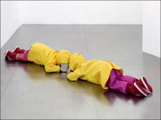 — Virginie Barré, Jean et Joan, 2011. Résine, vêtements, lest amovible. 28 x 104 cm x 50 cm chaque.
