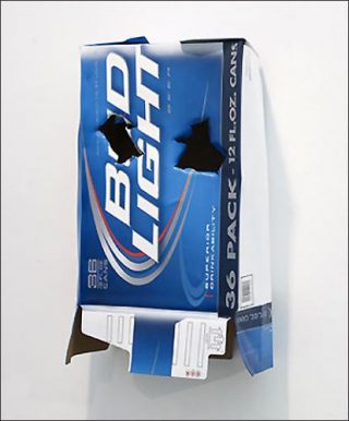 Il y a également les sculptures pernicieuses, celles qui imitent parfaitement la réalité. Les propositions de Tony Matelli sont de cet ordre-là. Empilant canettes de bière et cartes à jouer, dans un faux désœuvrement qui est en contradiction avec le processus même de la création d’une œuvre d’art, Tony Matelli érige de malignes sculptures qui, indolentes, superficielles et fruits d’une banalité avouée, font semblant de jouer au réel. Alors qu’elles sont œuvres d’art, bien sûr.