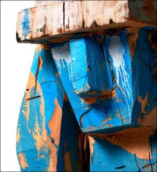 — Volk Ding Zero (détail), 2009. Wood, oil paint, paper, nails, 308 x 120 x 125 cm