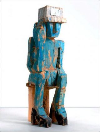 Il ne recherche aucun effet de modelé. Ses personnages sont bruts de décoffrage et conservent le look cubiste d’antan. Ces philosophes d’apparence paisible et distinguée sont en fait des écorchés vifs, comme les personnages de ses peintures. Et ils arborent des marques de pinçures, comme les adeptes de rituels SM.