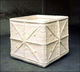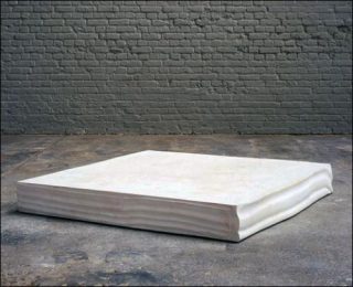 On peut songer à ces pièces présentant un volume au matériau solide et lourd (pierre, plâtre ou fer) posé sur un volume identique mais au matériau souple et léger (mousse de polyuréthane), avec un jeu d’écrasement de l’un par l’autre qui manifeste le rapport au sol. Puis, dans une confrontation directe avec la question du socle, des «répliques» de socles de sculptures décisives de l’histoire (Rodin, Carpeaux, David Smith, Chamberlain) furent exposées pour elles-mêmes (en plâtre, en bronze). Puis, grâce à la déclinaison possible à partir d’un moulage, un positif fut présenté à front renversé sur son semblable, ou bien sur son négatif (son propre moule), ou bien encore retourné comme un gant, toutes armatures dehors. Mais si à chaque fois l’autonomie du socle en tant que sculpture est manifestée, les réflexions de Didier Vermeiren vont bien au-delà du recours au socle en tant que «ready made». L’œuvre n’est pas seulement trouvée là , mais, dans un devenir proprement plastique, le volume choisi est redéployé, travaillé, «sculpté».