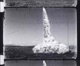 Le travail d’archivage de Joana Hadjithomas et Khalil Joreige se poursuit à travers The Lebanese Rocket Society, qui nous rappelle l’existence, au début des années 1960, d’une communauté de scientifiques et d’étudiants qui se lança dans un programme de construction spatiale. L’Album du président présente un ensemble de photos de fusées, extrêmement médiatisées à l’époque, mais complètement oubliées de nos jours. Les tirages, longs de huit mètres, sont pliés en trente-deux parties, et peuvent être déployés, comme si l’installation symbolisait un passé enfoui, tronqué, parcellaire, que l’on pourrait restituer et recomposer dans son intégralité. On découvre d’ailleurs dans la suite de l’exposition des images des lancements des fusées. Pourtant, à chaque fois, les photographes manquent le projectile, certainement trop rapide, trop évanescent, et n’arrivent qu’à capturer la fumée qui trace son sillon dans les airs.