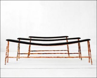 La Galerie Gosserez présente une avant-première exclusive de la nouvelle collection Spring/Summer du designer Valentin Loellmann, qui s’inscrit dans la continuation et comme un écho à la série très remarquée Fall/Winter. Cette nouvelle collection, à laquelle de nouvelles pièces pourront s’ajouter au fil du temps, se décline autour d’objets associant un plateau ou une assise en chêne, sur lequel on vient modeler un piétement en métal forgé. La base métallique est ensuite plongée dans une solution électrolyte pour la recouvrir d’une peau de cuivre. La partie en chêne est longuement travaillée, polie, brûlée puis passée au sable, pour obtenir un magnifique fini cuir mat.