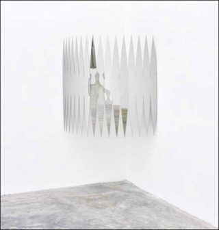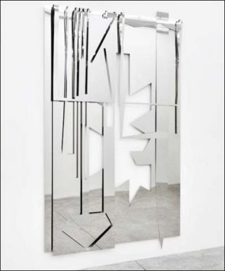 Le « corps » de la sculpture chez Tarik Kiswanson ne consiste jamais en un volume plein, en une matière qui serait fermée sur elle-même. Il s’agit au contraire d’une structure, au sens propre du terme, principalement aérienne et immatérielle, où le vide joue un rôle dynamique majeur. Ces surfaces métalliques, façonnées par l’artiste, imposent au regardeur la présence à la fois incertaine et menaçante de leurs contours volontiers coupants, de leurs angles aigus, de leurs pointes effilées et de leurs reflets multiples. Les traces d’oxydation, produites sous l’action de la soudure, prennent ici une dimension d’ordre pictural en ce qu’elles maculent, de toutes les couleurs du spectre, ces surfaces réfléchissantes parce que longuement polies. Ramené à ses lignes de forces, à ses arêtes, un mobilier squelettique est par exemple sciemment dépourvu de son rôle de support ou stockage. Il se voit tantôt posé sur le sol ou accoté au mur, où il côtoie volontiers des masques (voire les formes négatives de ceux-ci) fixés au mur, tels des reliefs évoquant les expérimentations constructivistes de Gabo et Anton Pevsner sur l’art africain. Autre fait notable, ces objets paradoxaux se montrent réactifs à leur environnement, tant sur un plan spatial qu’humain : sensibles à la proximité de leur observateur, elle mettent en jeu la surprenante élasticité du métal. Souvent en équilibre, elles vibrent au moindre contact de la main, au moindre déplacement d’air. Sans compter leur constante résonance politique et culturelle, qui traduit la double origine, scandinave et arabe, de leur auteur, les oeuvres de Tarik Kiswanson semblent démontrer la nécessité d’une réactivité physique de l’oeuvre à la présence d’un spectateur légitimement lassé de l’image-emballage ou du virtuel hoquetant.