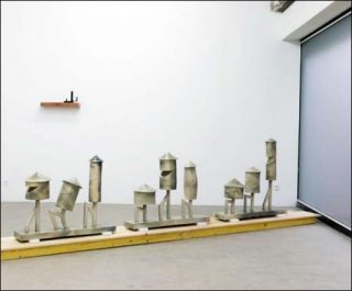 Les trois ensembles composant Anima (Steam Whistles) matérialisent dans la faïence émaillée la chorégraphie des sifflets de Steamboat Willie, qui, dans leur anthropomorphisme minimal se font les emblèmes burlesques d’une pulsion vitale — chanter et danser étant la seule raison d’être des personnages de Disney. Empêchés par un mode de représentation à contre-emploi, les trois acolytes tentent tous les efforts pour faire durer le spectacle dont l’illusion s’est dissipée.