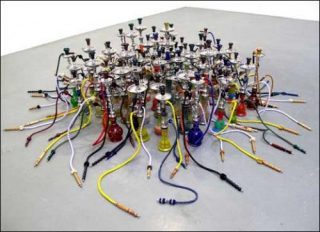 — Mounir Fatmi, Assassins, 2009-2010, installation de dimensions variables, narguilés de tailles variables, édition 1/5