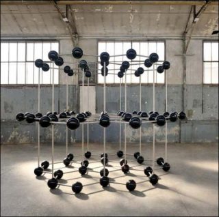 Une dizaine de pièces qui se jouent des échelles et des techniques pour reproduire, mesurer, réduire ou agrandir le monde, la matière et la galerie qui les expose. Une structure moléculaire monumentale aux allures de sombre planétarium, représentation à la fois scientifique et mélancolique, surplombera l’espace d’exposition.