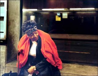 Valérie Jouve poursuit son exploration de la rue et des habitants qui l’occupe, au jour le jour. Ici, une femme assise sous un abribus, plus loin des hommes et des femmes photographiés à la volée, de profil, dans la dynamique de leur marche. La focale est toujours aussi précise et le travail, long cheminement vers l’âme de ces figures anonymes, aussi percutant.