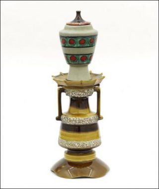 Ainsi décrite, l’exposition pourrait presque passer pour une proposition somme toute classique en termes de genre pictural, d’iconographie et de médium. Mais la composition des oeuvres fait basculer l’ensemble vers tout autre chose: des assemblages incongrus qui convoquent aussi bien des grands maîtres de l’histoire de l’art que des pratiques artistiques amateur. Richard Fauguet navigue entre pâtisserie et peinture, poterie et plomberie, fait main et ready‐made. Il expérimente, se laisse guider par des processus créatifs intuitifs qui, depuis une vingtaine d’années, alimentent sa logique interne de formes et d’images richement référencées. Dilettantisme et délire sérieux, déambulation au coeur de l’ordinaire, de ce qui compose le terriblement banal soit parce qu’il est devenu obsolète, soit parce que nous ne le regardons plus, Fauguet combine avec légèreté des objets de décoration, des artefacts vernaculaires, des matériaux domestiques ou de bricolage.