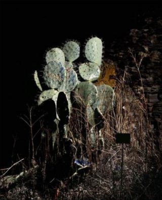 A la lumière du flash, comme sous les projecteurs, les cactées revêtent leurs plus beaux atours dans une ambiance théâtrale qui magnifie les pratiques urbaines du graf et du tag, ici déployées sur des feuilles tentaculaires.