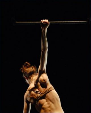 Dans le droit fil de ses précédentes créations, Chloé Moglia trace un chemin dans l’exploration de la suspension. Forme immersive, Opus corpus invite le public à traverser, à quelques centimètres du sol, la densité d’un champ de forces et d’incertitudes. Le corps arqué à l’extrême sur un trapèze minimaliste, elle décompose chaque mouvement avec une lenteur sidérante, donnant à voir chaque effort dans un total dépouillement et dans une proximité troublante.