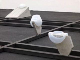 Ailleurs, c’est un nouvel ensemble de sculptures en verre boursouflées, greffées à même leur socle en béton qui livrent sans complexe leur secret de fabrication. Car ce qui fait surface (sensible) chez cette artiste qui aime citer dans le même temps Paul Thek et Michael Asher, c’est aussi l’expérience en filigrane d’un corps au travail: ici, celui du souffleur; ailleurs, celui du bâtisseur empilant inlassablement des parpaings de béton venus obstruer l’accès aux salles d’exposition. D’un corps, celui de l’artiste, qui ne rechigne jamais à se coltiner le gros Å“uvre et à se confronter à la mesure de l’espace comme c’est le cas, en bout de course de l’exposition, avec cette installation monumentale et immersive cousue de rubans transparents. C’est précisément dans ces marges, indéterminées et fécondes que se joue le travail de Morgane Tschiember, à la lisière d’un minimalisme habité et sensible, sur la crête des valeurs intrinsèques de matériaux et de pratiques réinvestis par l’artiste. «Tout ce qui est généralement caché lorsque l’on conçoit une pièce, est ici révélé et mis à nu», explique ainsi Morgane Tschiember, «Ainsi ce que l’on nomme défauts et contraintes est utilisé pour développer la relation physique à l’Å“uvre. Ce liant m’interpelle».