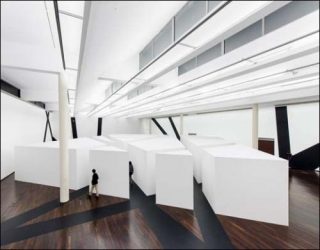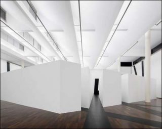 L’intérêt principal de l’œuvre consisterait alors à se placer justement à l’extérieur du cube, à tourner autour de sa structure, et à percevoir les différents modules blancs qui se juxtaposent et forment ce carré. Mais plutôt que d’évoquer une déambulation possible, ou d’éveiller un sentiment de perte ou de complexité par rapport à l’espace parcouru, l’installation semble se contenter d’imbriquer des formes géométriques simples dans un espace neutre, homogène, clinique.