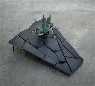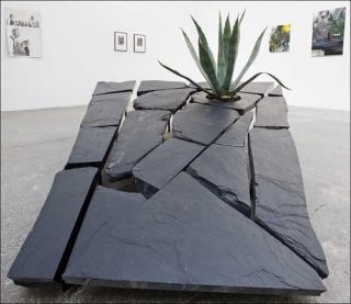 — Grand Opus, 2009. Ardoise, fer à béton, béton, terre, agave “Americana”. 140 cm x 250 cm x 260 cm