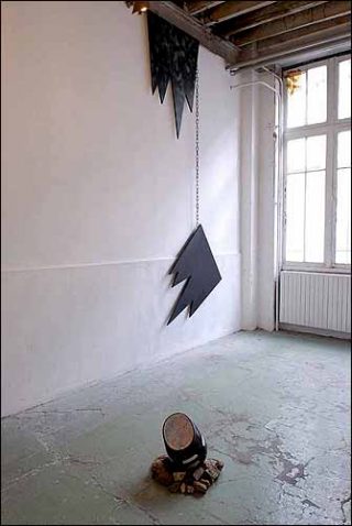 — L’Origine du déclin du monde, 2006. Peinture, bois.